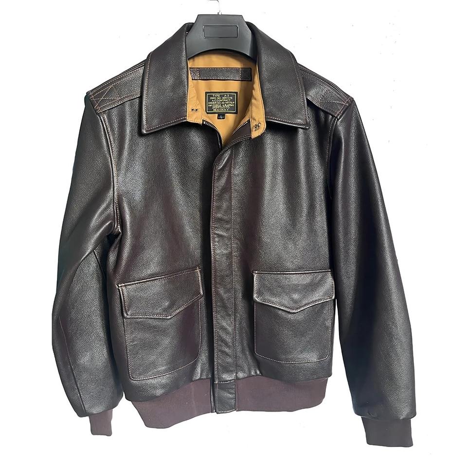 แจ็คเก็ตนักบินหนังแท้สำหรับผู้ชาย, เสื้อ A2นักบินพร้อมผ้าแคนวาสระบายอากาศได้ดีและกันน้ำ