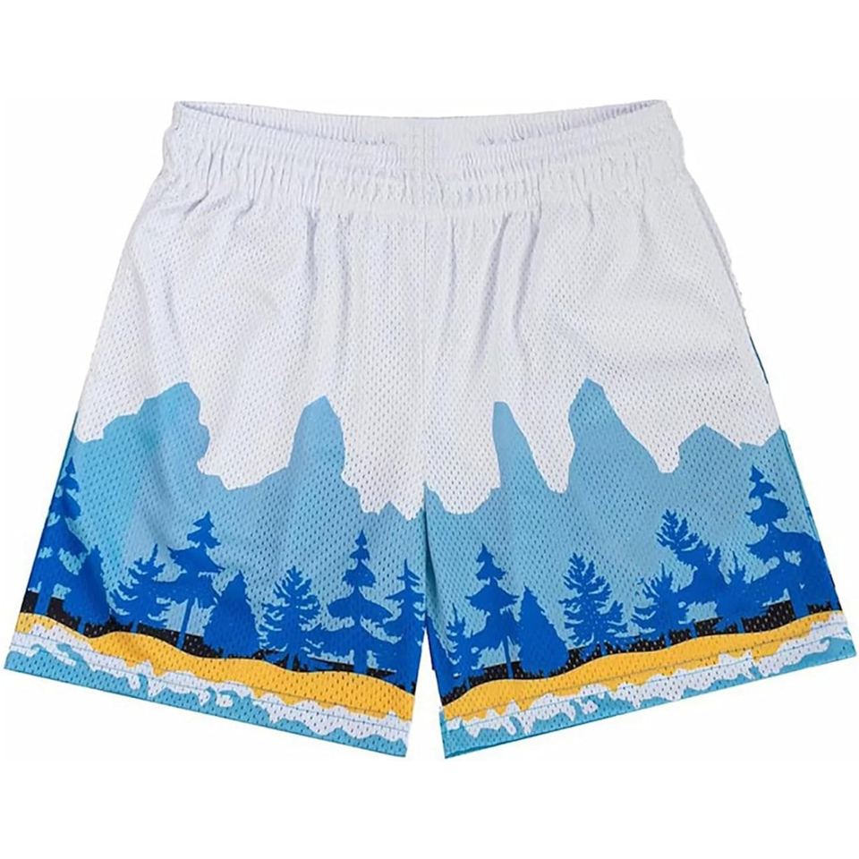กางเกงขาสั้นตาข่ายพิมพ์ลายเสือดาวสำหรับผู้ชายกางเกงขาสั้นออกกำลังกายแบบลำลองระบายอากาศน้ำหนักเบา