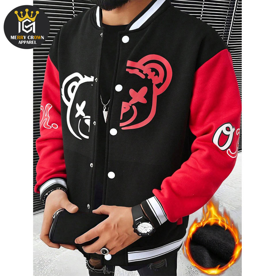 เสื้อแจ็กเก็ตฤดูหนาวสำหรับผู้ชายเสื้อแจ็กเก็ตฤดูหนาวสีบล็อกกราฟิกสำหรับผู้ชายสวมใส่สบายทนทานวัสดุนิ่ม