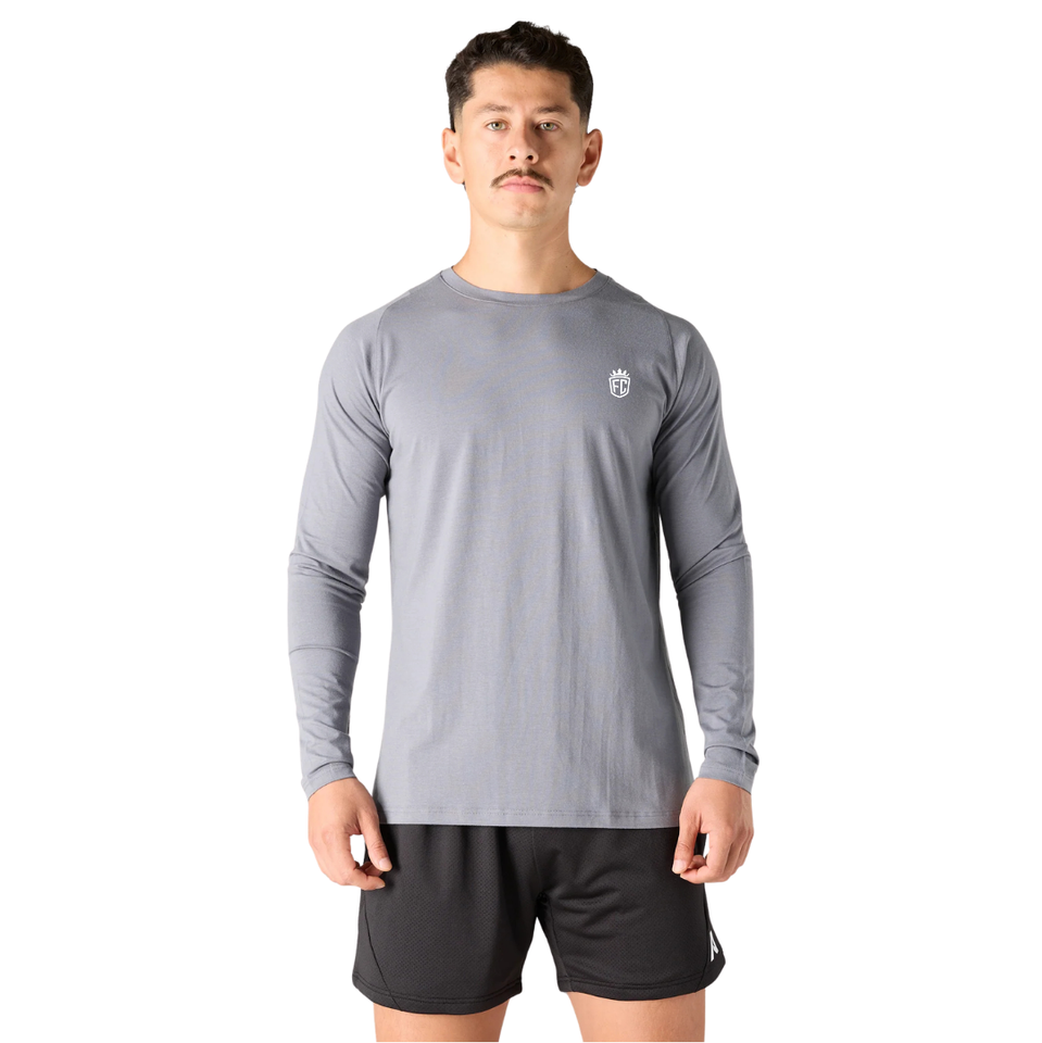 เสื้อยืดแขนยาวผู้ชายทรงสลิมฟิตสำหรับออกกำลังกาย ฟิตเนส เทรนนิ่ง ผ้าสเตรช ยืดหยุ่นได้ดี รับผลิตแบบ OEM ขายส่งจำนวนมาก