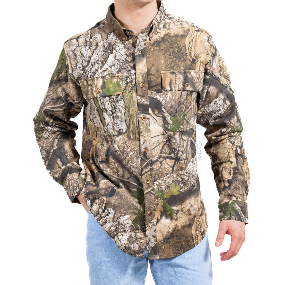 เสื้อเชิ้ตแขนยาวลายพรางสำหรับผู้ชาย เหมาะสำหรับการล่าสัตว์ ท่องเที่ยวในป่า และกิจกรรมกลางแจ้ง