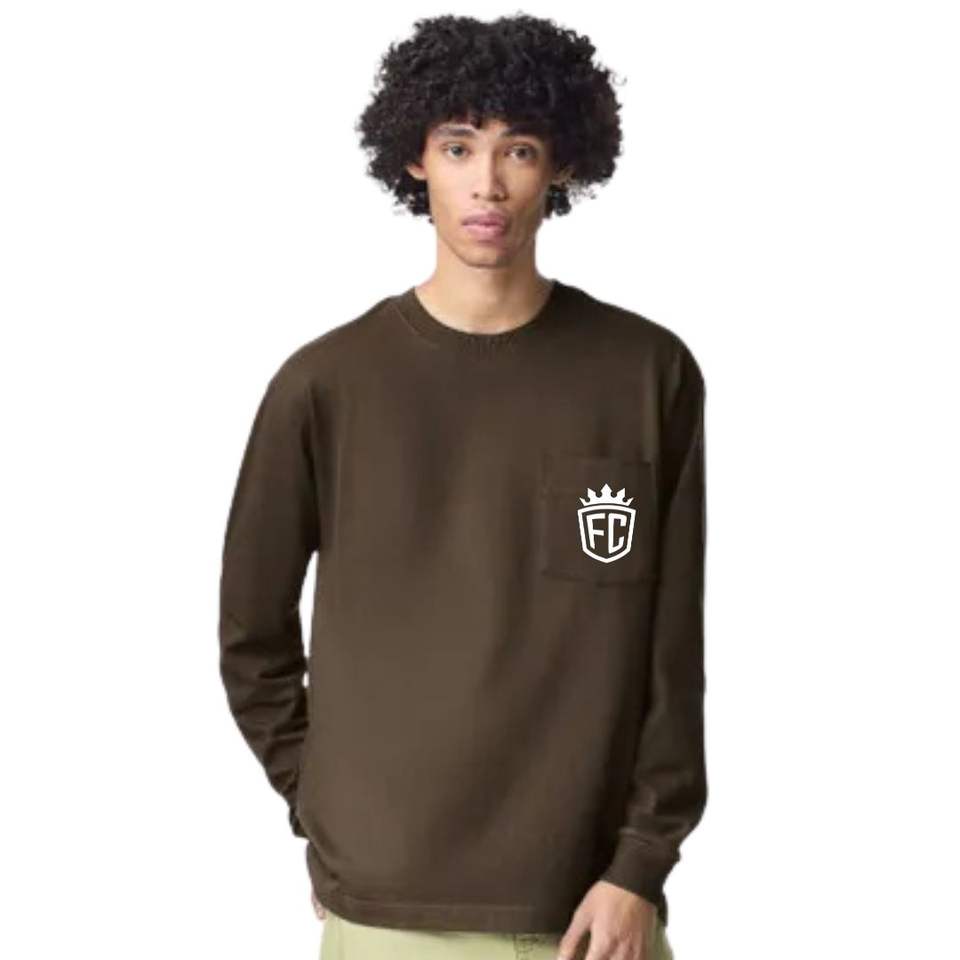 เสื้อยืดแขนยาวผู้ชาย ผ้าฝ้าย คอกลม สไตล์ลำลอง สตรีทแวร์ มีกระเป๋าหน้าอก ทรงหลวม