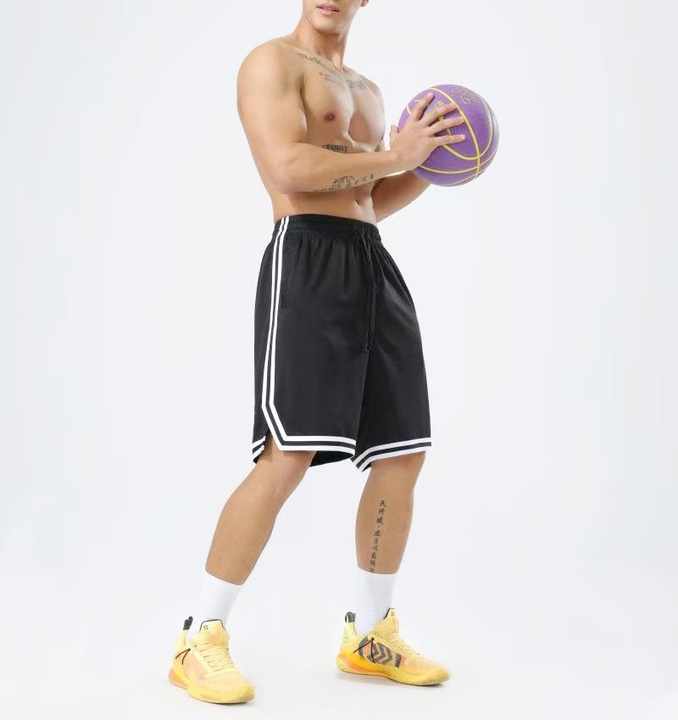 กางเกงขาสั้นเล่นบาสเก็ตบอลสำหรับผู้ชายกางเกงขาสั้นเล่นกีฬาแห้งเร็วทำจากโพลีเอสเตอร์มีแถบข้างสำหรับผู้ชาย