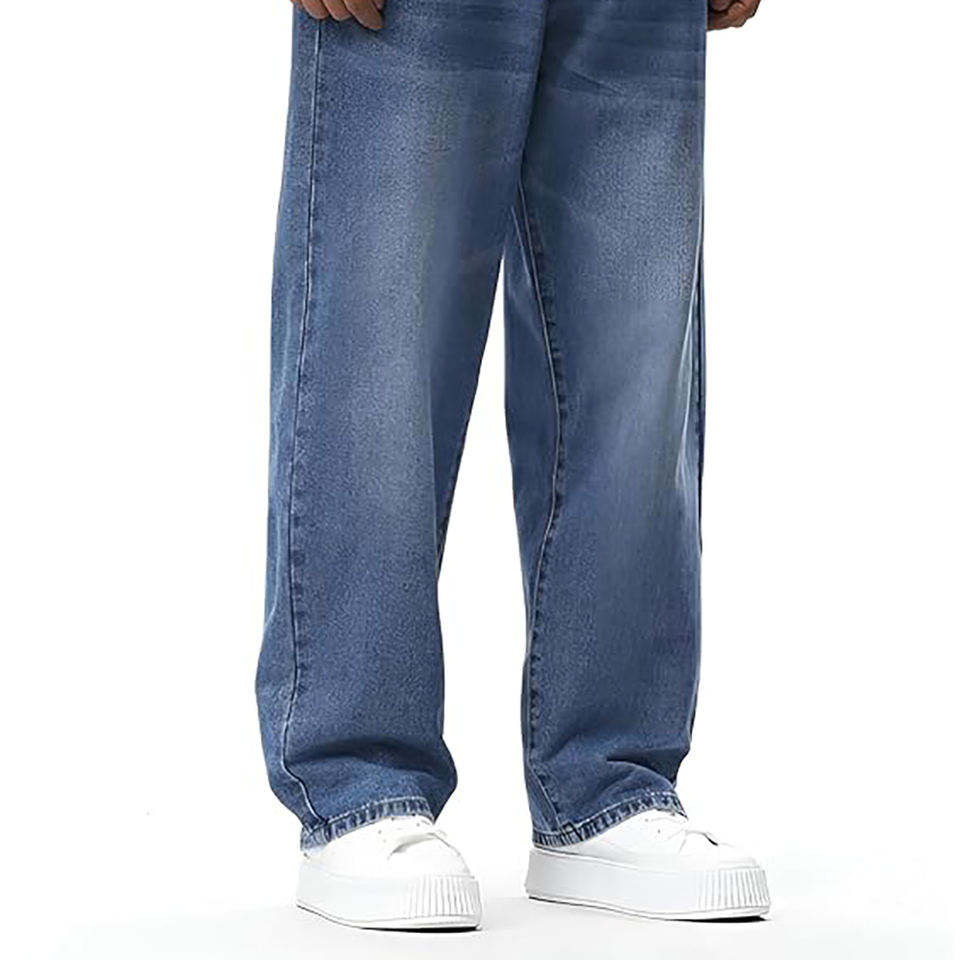 กางเกงยีนส์เดนิมทรงหลวมเอวกลางสำหรับผู้ชาย เป็นมิตรกับสิ่งแวดล้อม ระบายอากาศได้ดี แฟชั่นลำลอง ใส่ได้ทุกวัน เย็บตะเข็บเรียบเนียน