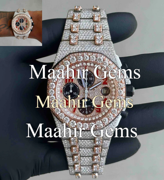 นาฬิกาข้อมือผู้ชายหรูหรา สไตล์ฮิปฮอป ประดับเพชรโมอิสซาไนต์ หน้าปัดคริสตัลแก้ว ตัวเรือนสแตนเลสสตีล กันน้ำ 10 บาร์ ระบบควอตซ์