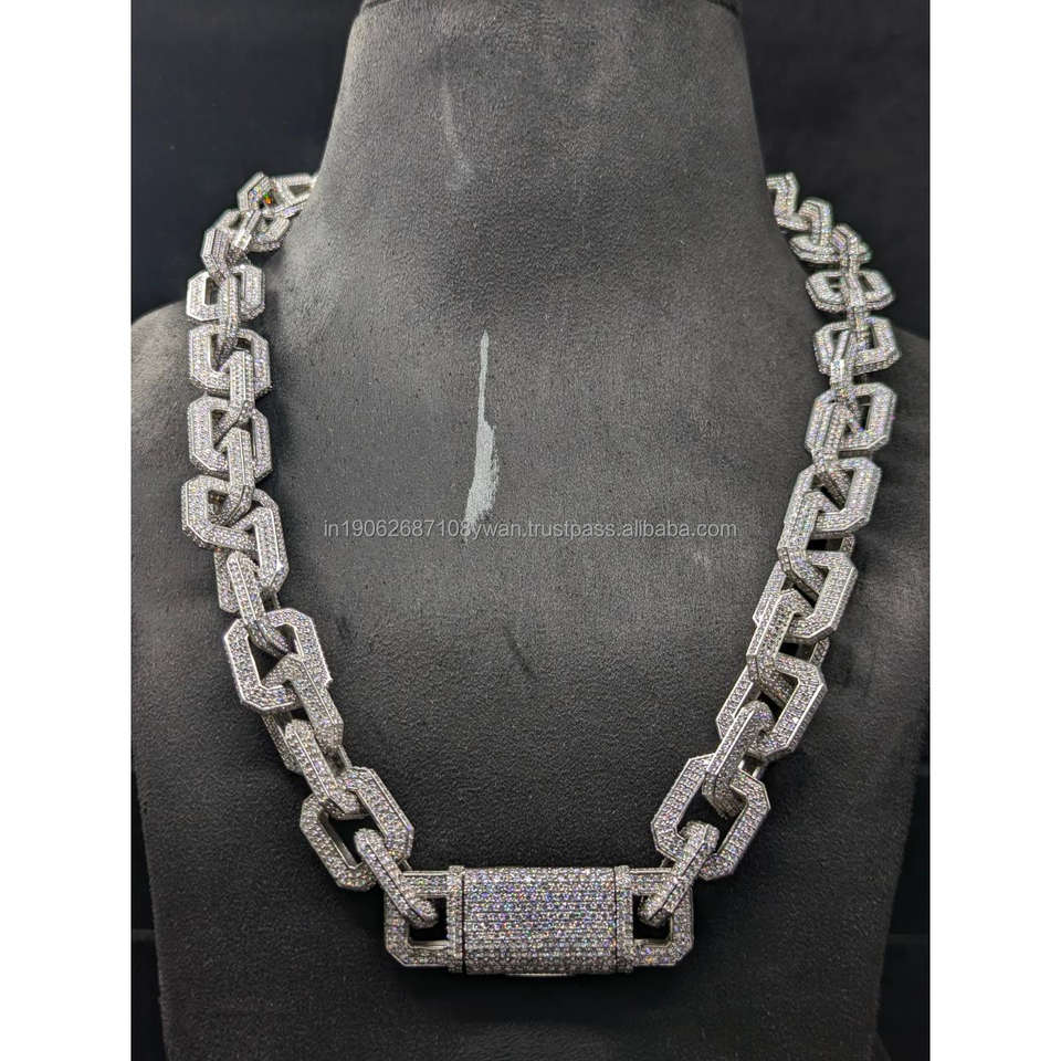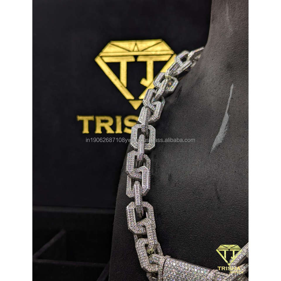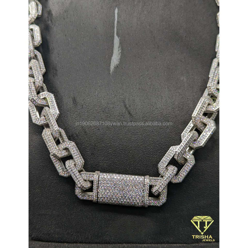 สร้อยคิวบาลิงค์แบบหรูหราสำหรับผู้ชาย ประดับเพชรโมอิสซาไนต์ VVS พร้อมเงินแท้ 925 เครื่องประดับฮิปฮอป โดย Trisha Jewels