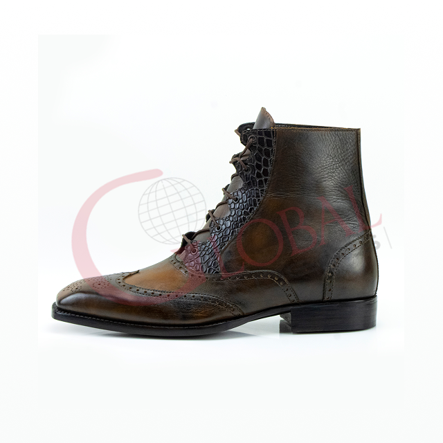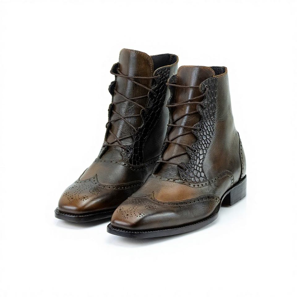 รองเท้าบูทหนังผู้ชายสไตล์หรูหรา แบบผูกเชือก หัวปิดทรงวิงทิป ลายหนังจระเข้ สำหรับใส่ทำงานหรือในโอกาสทางการ ดีไซน์คลาสสิก