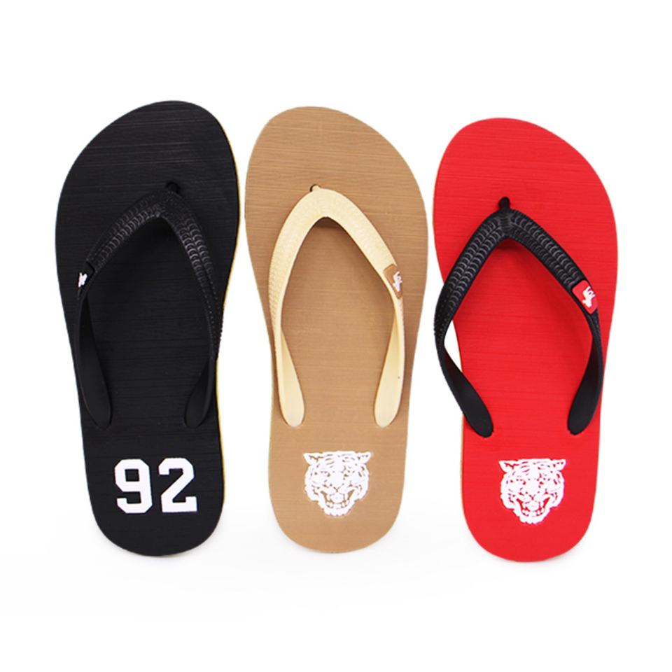 รองเท้าแตะชายลายเสือหรูหรา แฟชั่นรองเท้าชายหาดกันลื่น รองเท้าลำลองแบบสวม รับทำโลโก้ รองเท้าใส่เที่ยวข้างนอก