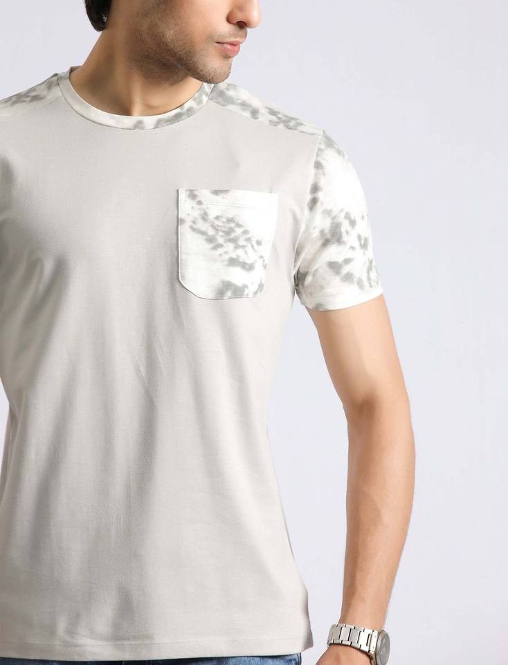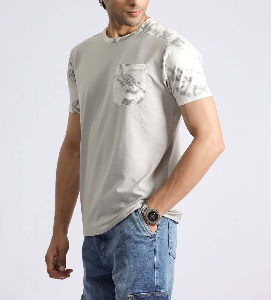 Men Made in Pakistan Solid Color Premium Quality O-Neck Tie-Dye Accent Pocket Tee OEM Customizable Tie-Dye Shirts Streetwear