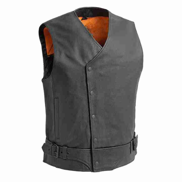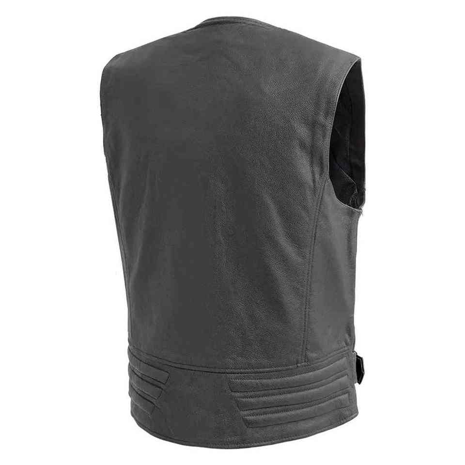 เสื้อกั๊กหนังวัวระบายอากาศตาข่ายสำหรับผู้ชายเสื้อกั๊กแบบเจาะรูมีซิปหนังแท้หนา