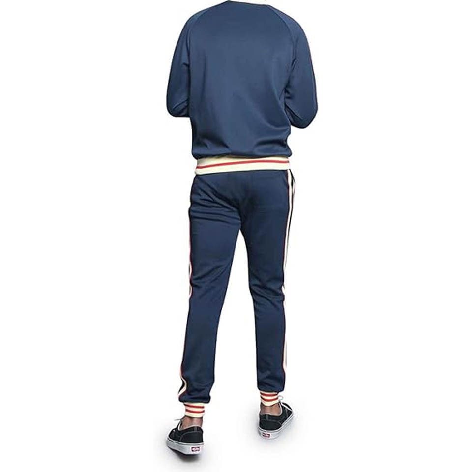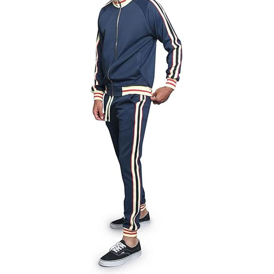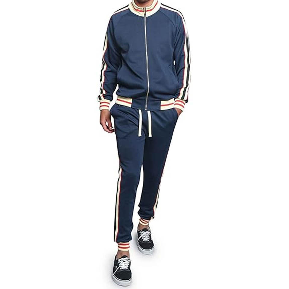 ชุดวอร์มผู้ชายทันสมัยเสื้อแจ็คเก็ตมีซิปใช้งานได้เข้าได้กับกางเกงวอร์มปรับได้เพื่อลุคฟิตเนสที่มีสไตล์