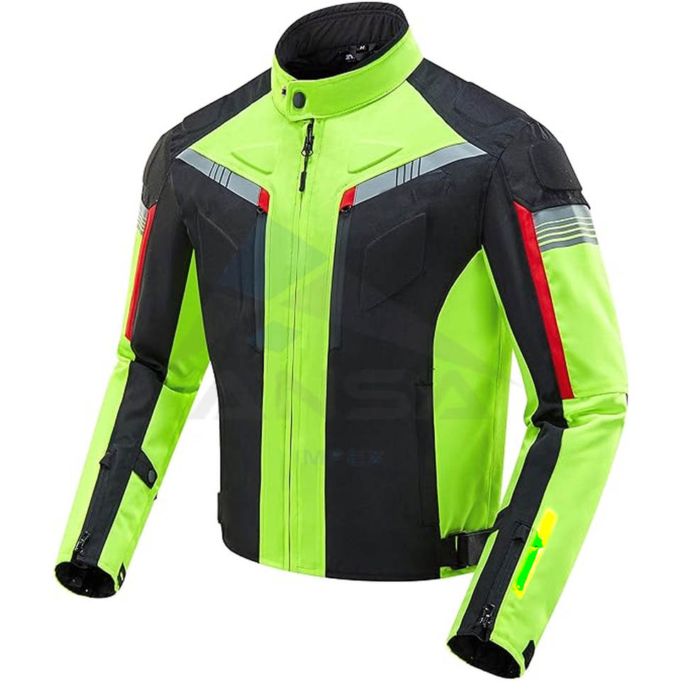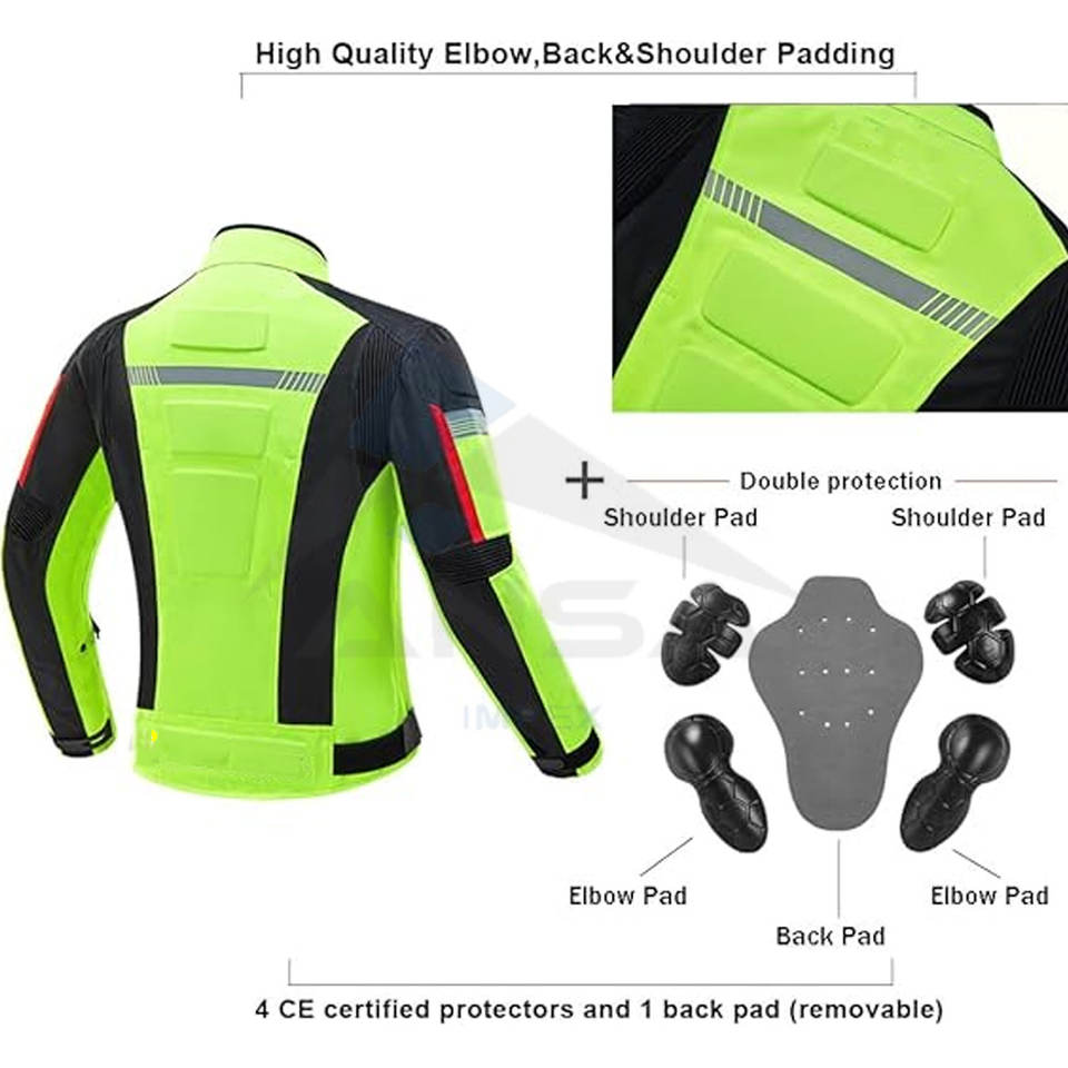 เสื้อแจ็คเก็ตมอเตอร์ไซค์สำหรับผู้ชาย พร้อมเกราะป้องกัน สำหรับขี่มอเตอร์ไซค์ กันน้ำ กันลม เหมาะสำหรับฤดูร้อน สีเขียวสะท้อนแสง