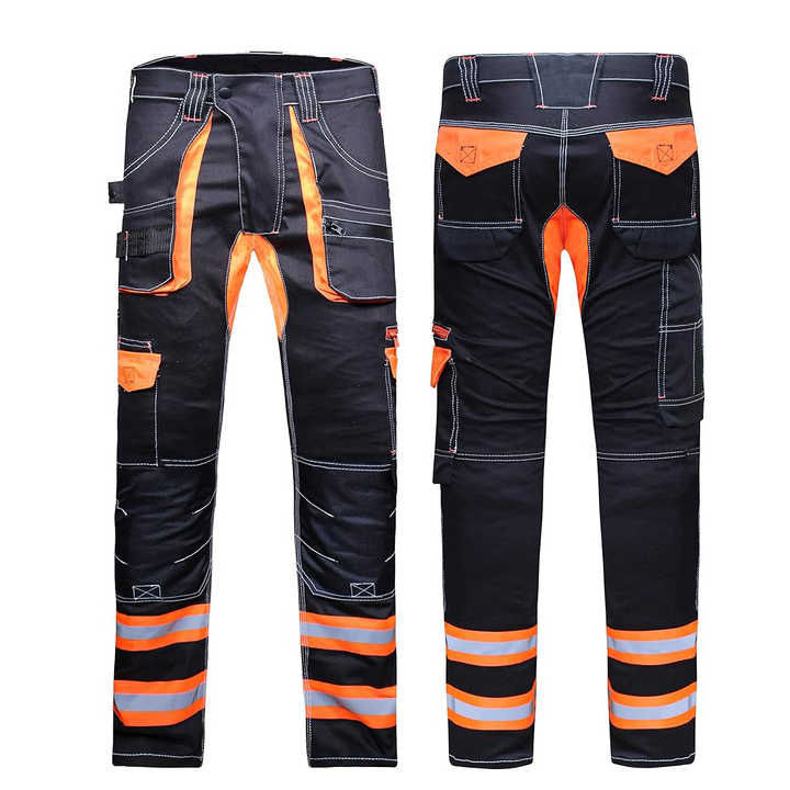 กางเกงทำงานผู้ชายแบบหลายกระเป๋า ทนทาน กันน้ำ สะท้อนแสง ผลิตจากโพลีเอสเตอร์ พร้อมโลโก้ตามสั่ง