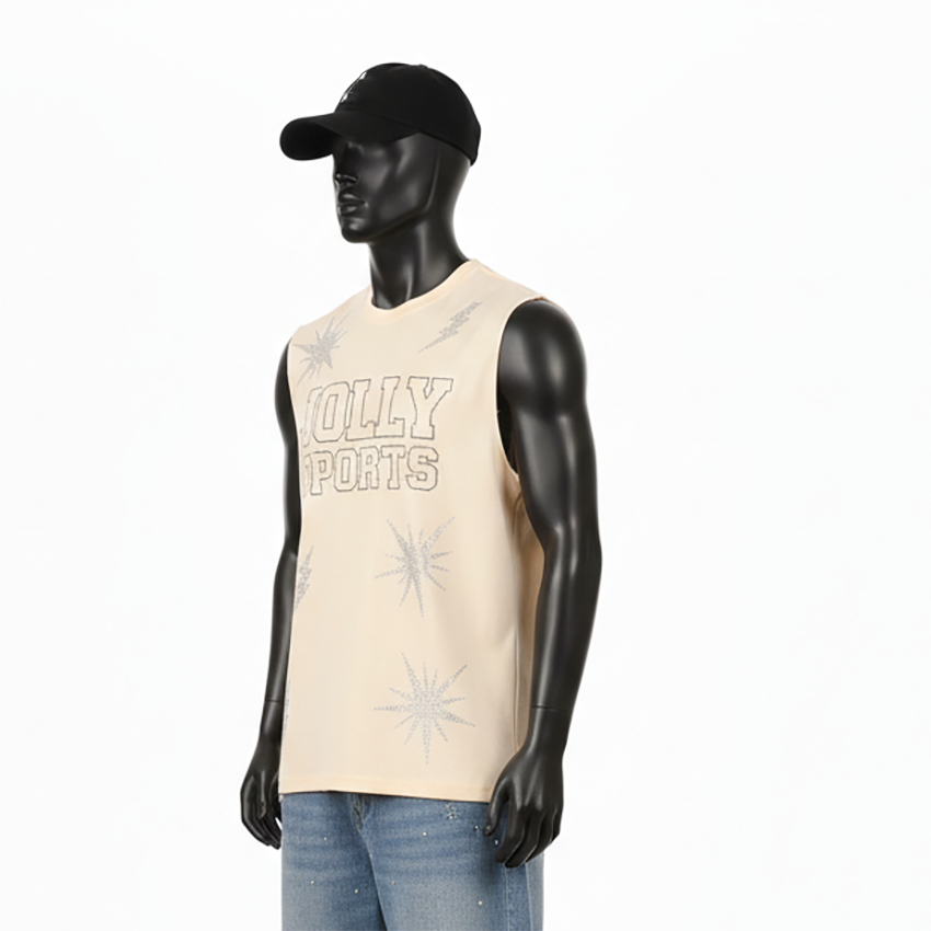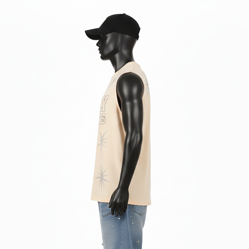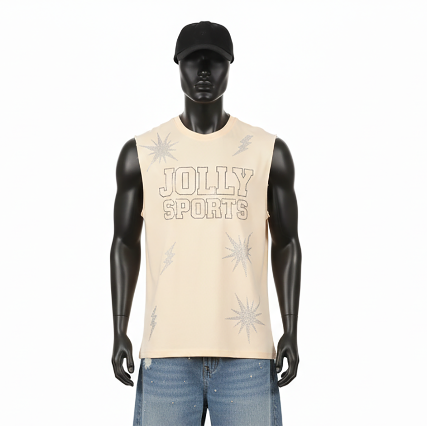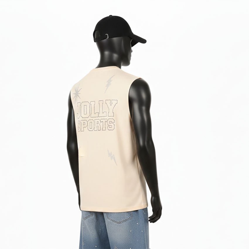 เสื้อยืดแขนกุดผู้ชายทรงเข้ารูป ผ้าคอตตอนเจอร์ซีย์ ชุดกีฬา พิมพ์ลายโลโก้ตามสั่ง เสื้อยืดผู้ชายผ้าฝ้าย 100% ทรงหลวม พิมพ์ลาย