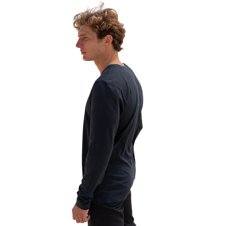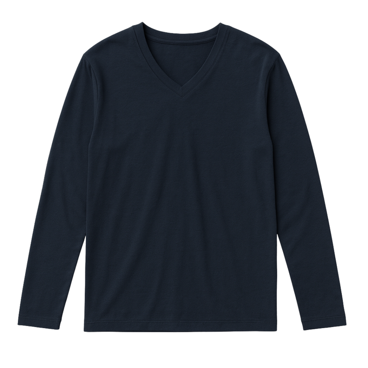 เสื้อยืดคอกลมแขนยาวผู้ชาย สีน้ำเงินกรมท่า ผ้าฝ้ายออร์แกนิค 100% ระดับพรีเมียม ผ่านการรับรอง GOTS ผ้าไม่หด ระบายอากาศได้ดี ทรงพอดีตัว