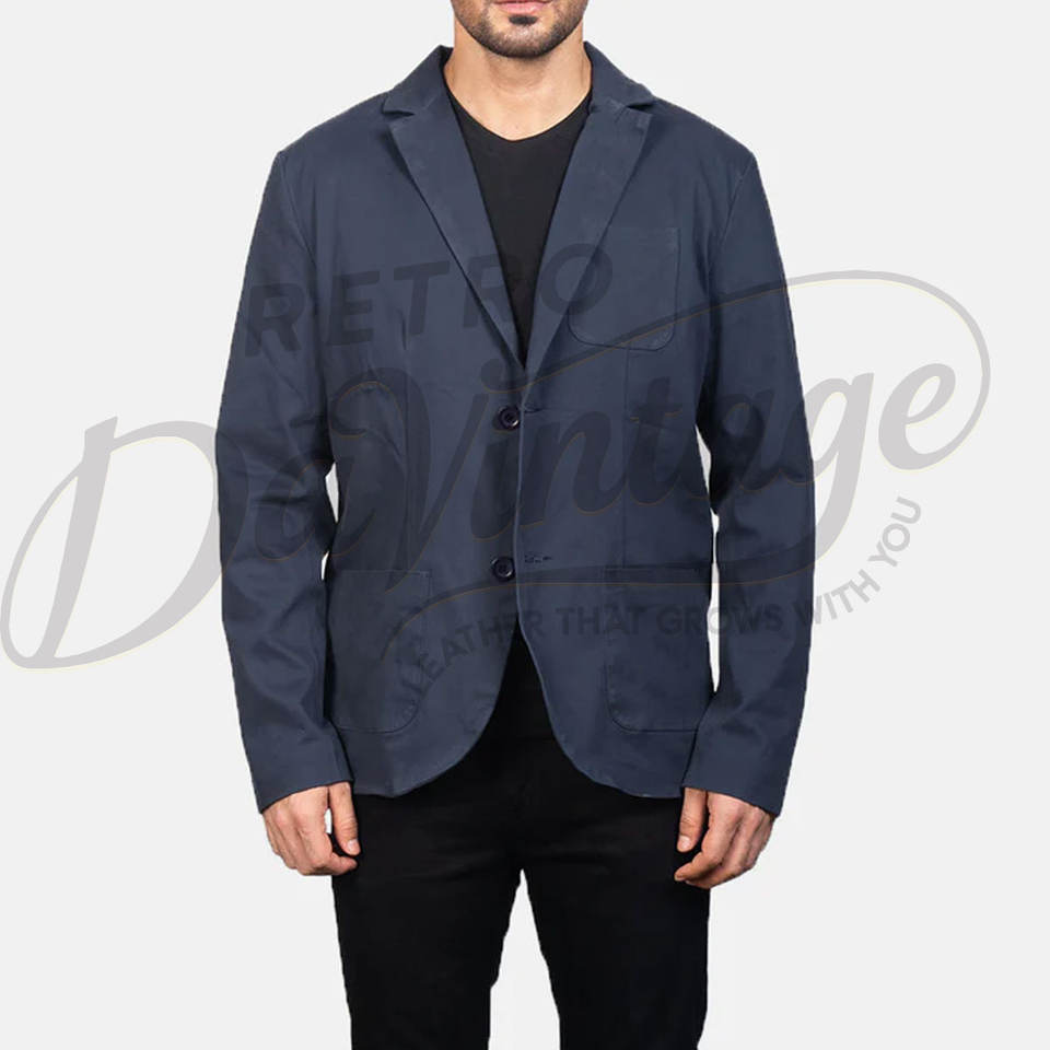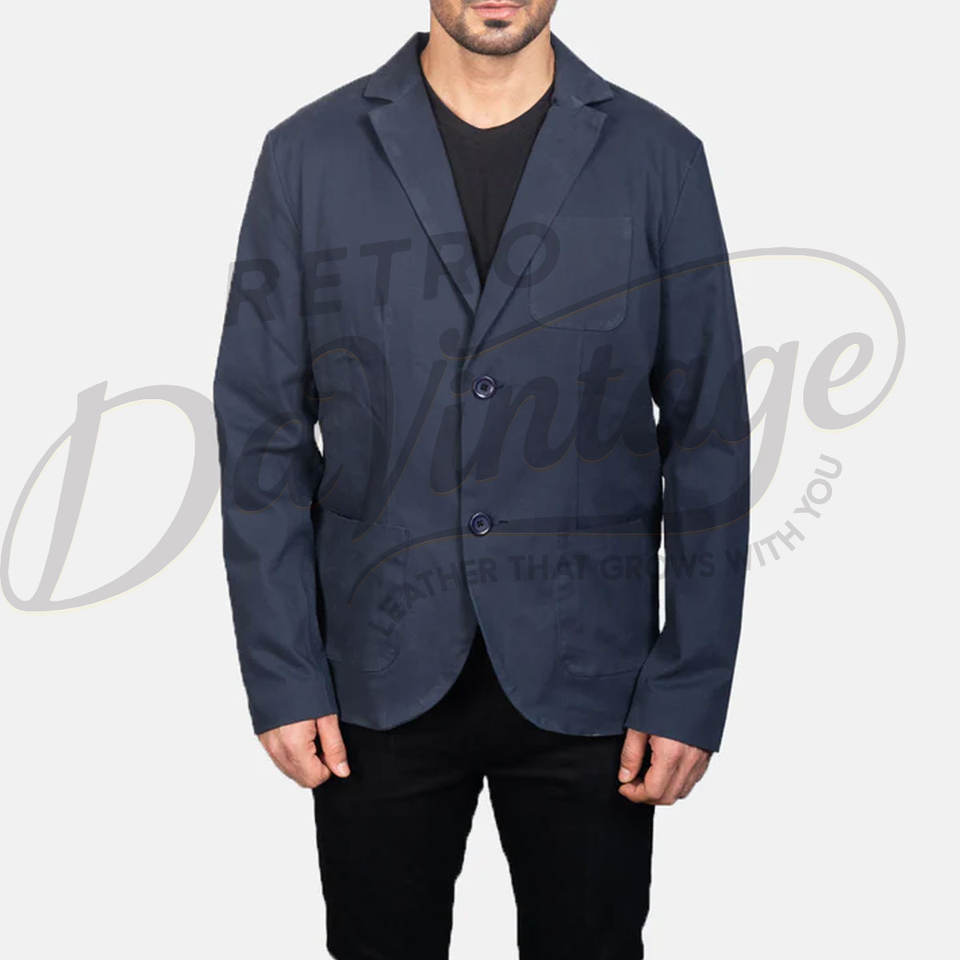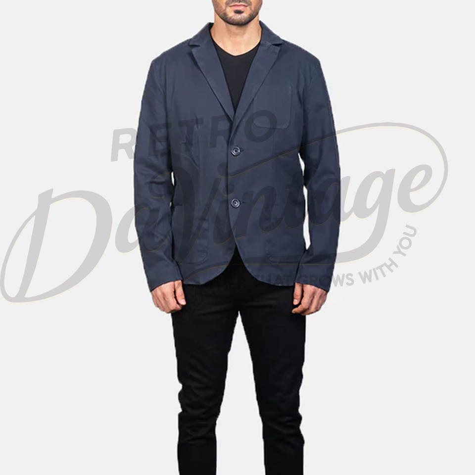 เสื้อเบลเซอร์ผ้าฝ้ายสีน้ำเงินกรมท่าสำหรับผู้ชาย พรีเมียม น้ำหนักเบา ทรงเข้ารูป สไตล์ลำลอง สปอร์ตโค้ท สำหรับธุรกิจและมืออาชีพ ระบายอากาศได้ดี เหมาะสำหรับฤดูร้อน