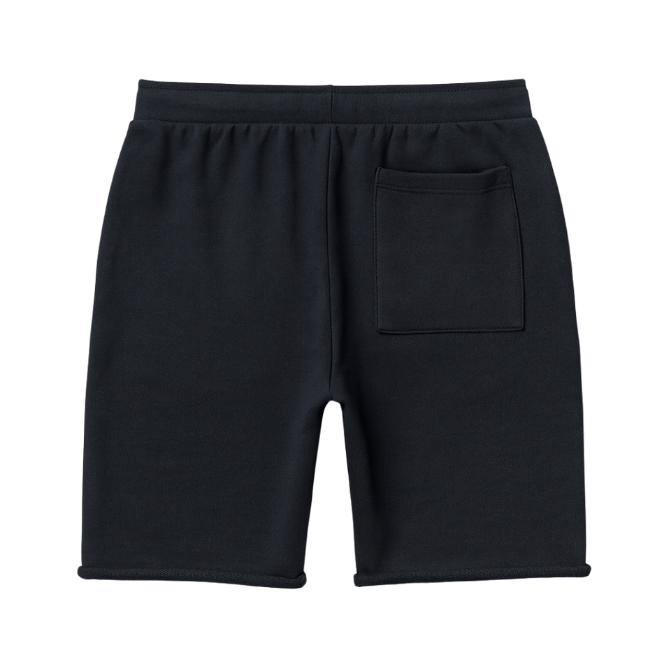 กางเกงขาสั้นผู้ชายสีกรมท่า ผ้าวอร์สเตด มีเชือกผูก เอวสม็อค ผ้ายืด/ผ้าฝ้ายออร์แกนิค ผ้าผ่านการซักก่อนส่งออก ได้รับการรับรองมาตรฐาน GOTS คุณภาพพรีเมียม สวมใส่สบาย ทรงคลาสสิก