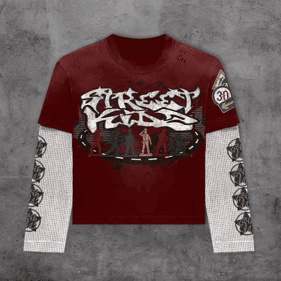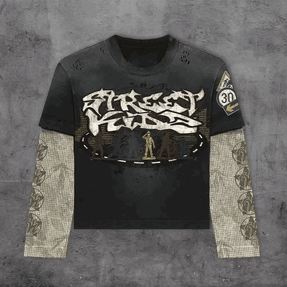เสื้อยืดทรงหลวมสองชั้นสำหรับผู้ชาย