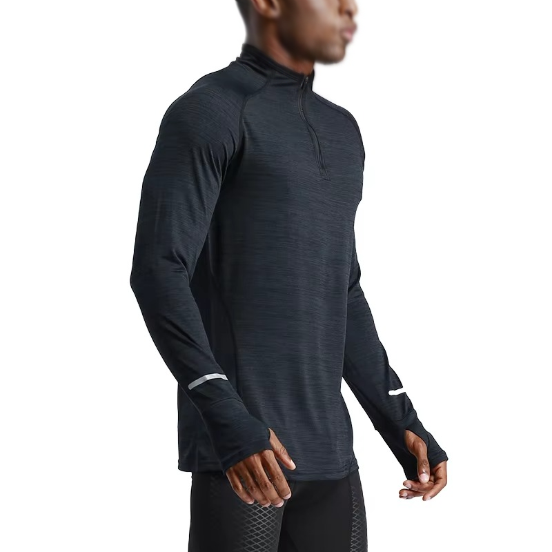 เสื้อยืดซิปครึ่งคอกลมสำหรับผู้ชายเสื้อออกกำลังกายแขนยาวระบายอากาศได้ดีเป็นมิตรกับสิ่งแวดล้อมสำหรับฤดูใบไม้ผลิฤดูร้อนและฤดูใบไม้ร่วง