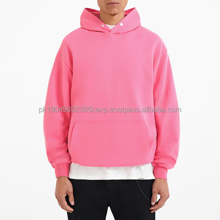 Men OEM Knitted Premium Custom Hoodie No String Blank Pull Over High Quality Luxury Heavyweight Cotton Pink Hoodie