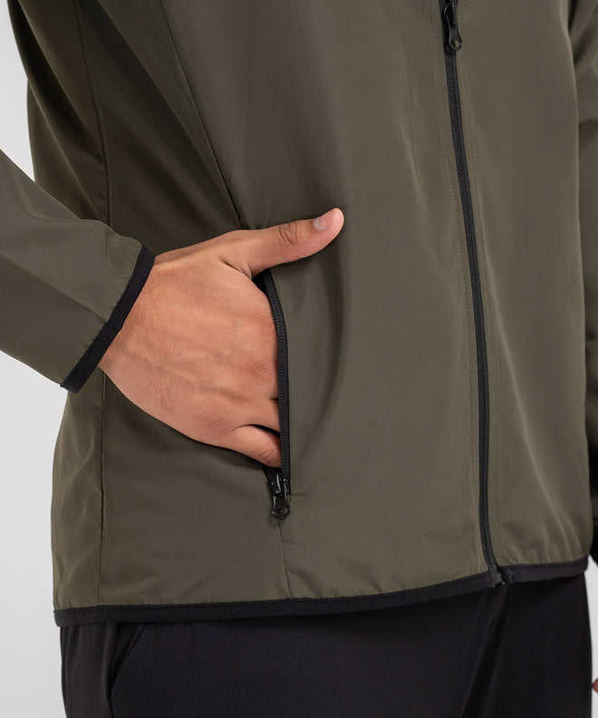 เสื้อแจ็คเก็ตผู้ชายสีเขียวมะกอก กันน้ำ ระบายอากาศได้ดี ดีไซน์ช่วงอก น้ำหนักเบา เสื้อผ้ากีฬา ขายส่ง เสื้อแจ็คเก็ตสีเขียว คุณภาพระดับอุตสาหกรรม
