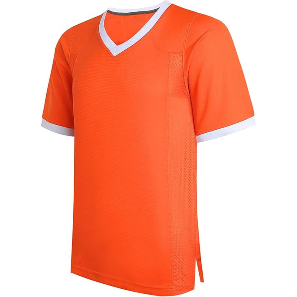 เสื้อฟุตบอลสีส้มสำหรับผู้ชายเสื้อซ้อมกีฬาผ้าตาข่ายน้ำหนักเบามีปกคอวี