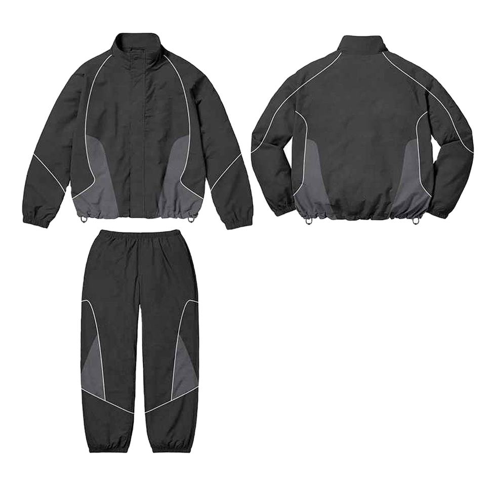 ชุดแจ็คเก็ตกันลมและกางเกงวิ่งสำหรับผู้ชาย ผ้าโพลีเอสเตอร์ไนลอนกันน้ำ สะท้อนแสง สำหรับเล่นกีฬากลางแจ้ง