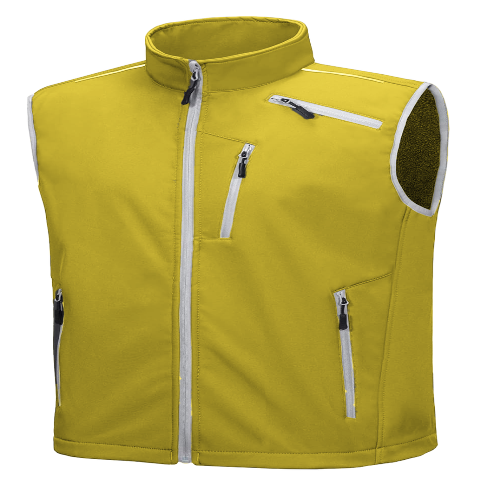 เสื้อกั๊กทำงานกลางแจ้งสำหรับผู้ชาย ผ้าฟลีซ ไม่มีแขน คอตั้ง โลโก้ด้านหน้า เป็นมิตรกับสิ่งแวดล้อม ป้องกันรังสียูวี แห้งเร็ว ระบายอากาศดี ปิดด้วยซิป
