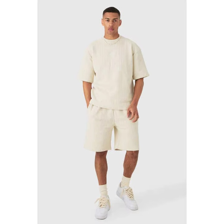 ชุดเสื้อและกางเกงผู้ชายสำหรับฤดูร้อน แบบสองชิ้น ผ้าถักเนื้อนุ่ม ระบายอากาศได้ดี เป็นมิตรกับสิ่งแวดล้อม