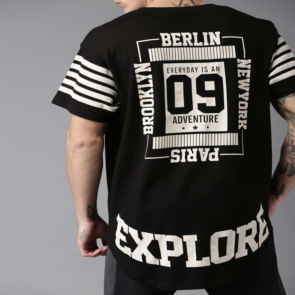 เสื้อยืดผู้ชายทรงยาวสีดำ