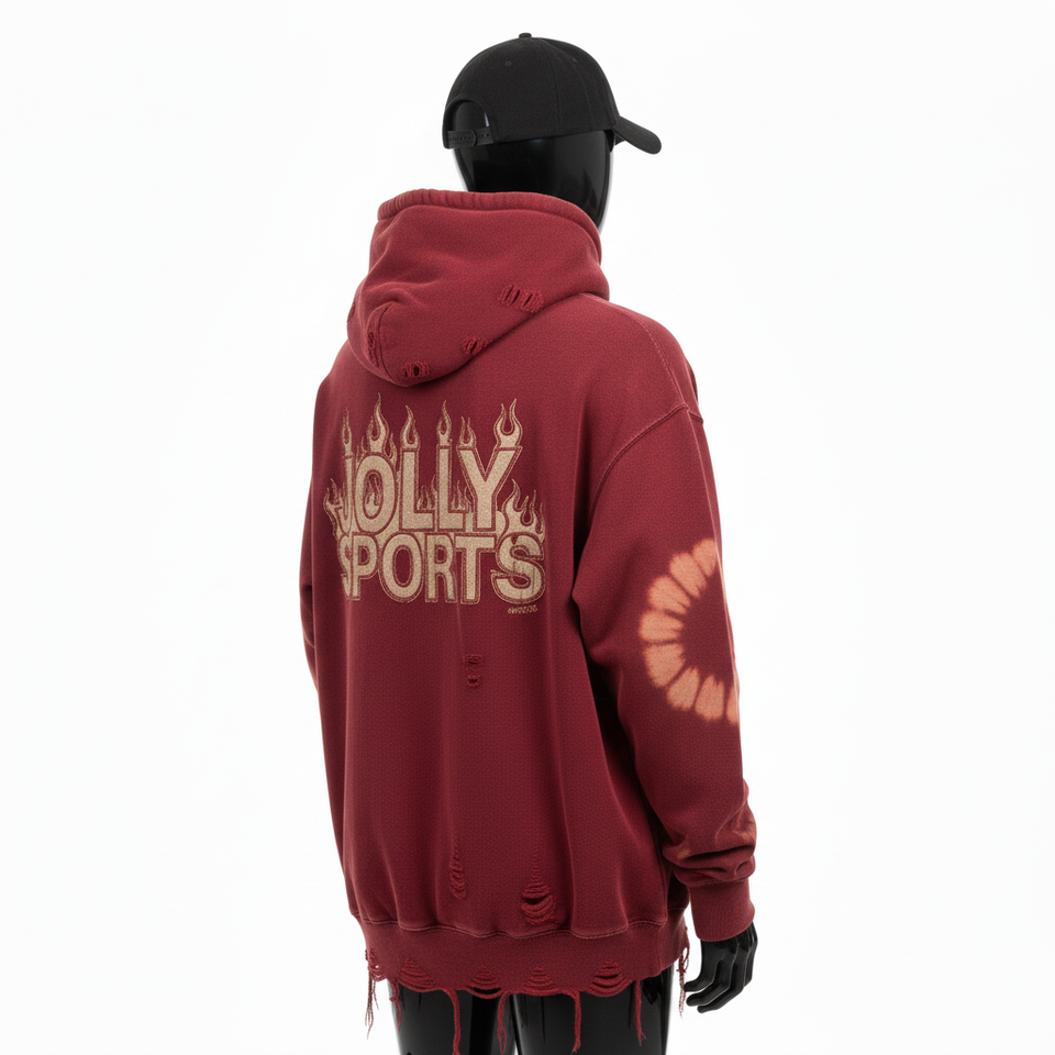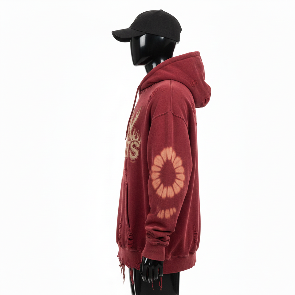 เสื้อฮู้ดดี้ผู้ชายไซส์ใหญ่ ผ้าฝ้ายฟลีซพรีเมียม GSM สีแดงอมน้ำตาล ผ้าฟอกทำสีซีด ปักโลโก้ตามสั่ง สไตล์สตรีทแวร์ เสื้อฮู้ดดี้พื้นฐาน