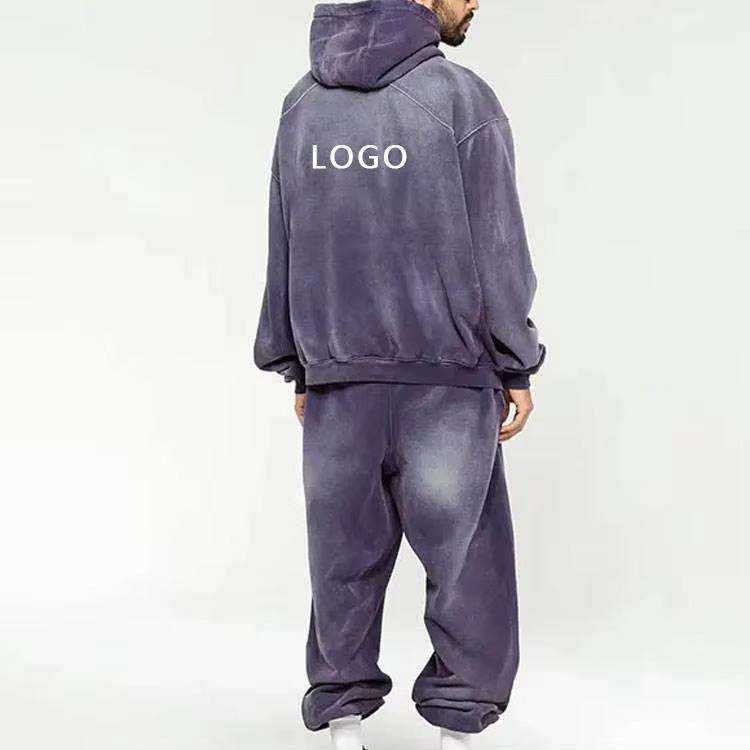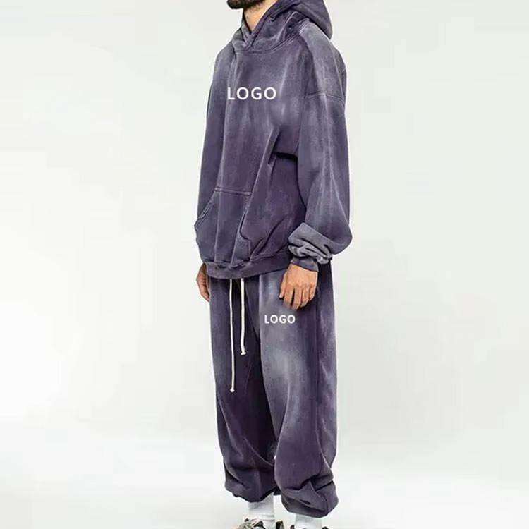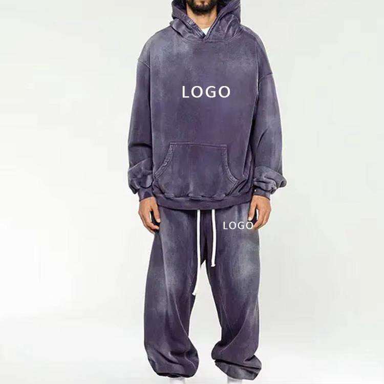 ชุดวอร์มล้างกรดสำหรับผู้ชายชุดวอร์มผ้าคอตตอนผ้าฟลีซ100% ขนาดใหญ่ชุดวอร์มไหล่ตกไซส์ใหญ่พิเศษ