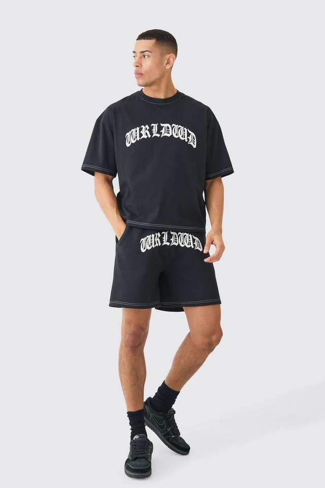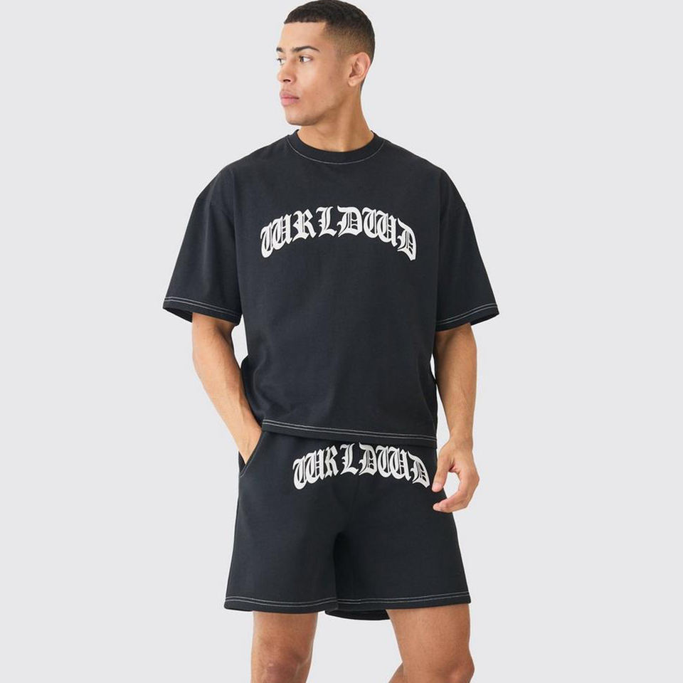 ชุดเสื้อยืดแขนสั้นสำหรับผู้ชายชุดเสื้อยืดพิมพ์ลายพัฟและกางเกงขาสั้นสำหรับฤดูร้อน