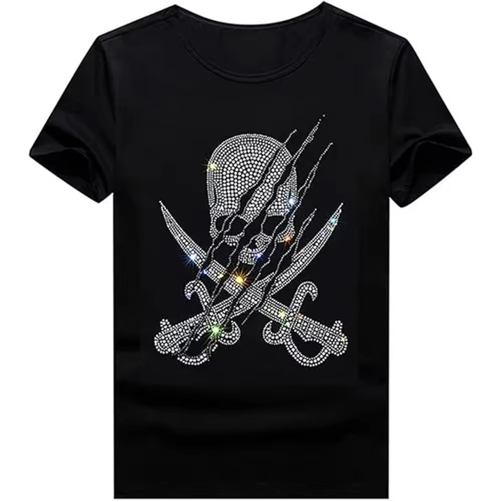 เสื้อยืดลายกราฟิกแนวสตรีทแวร์ลำลองขนาดใหญ่สำหรับผู้ชายดีไซน์การ์ตูนฮิปฮอปประดับพลอยเทียม