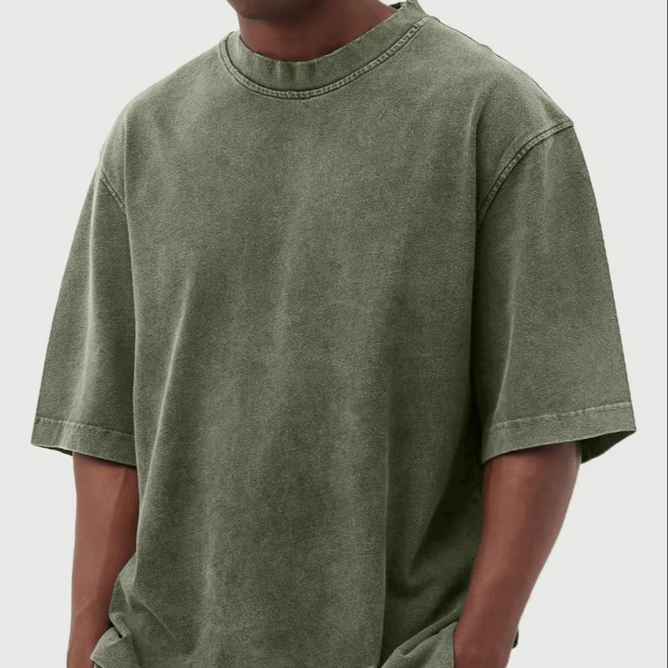 เสื้อยืดผู้ชายทรงโอเวอร์ไซส์ คลาสสิค ผ้าฝ้ายฟอกสีเขียวมะกอก ผลิตตามสั่ง แฟชั่นฤดูร้อน เนื้อผ้าหนา