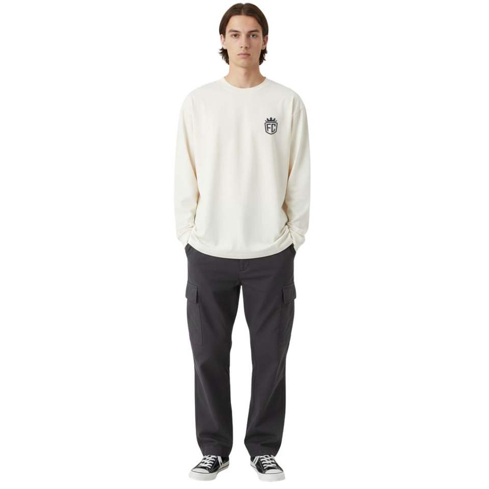 เสื้อยืดแขนยาวผู้ชายไซส์ใหญ่ โลโก้เล็กๆที่อก ผ้าฝ้าย คอกลม สไตล์สตรีทแวร์ ขายส่ง รับผลิตเสื้อผ้าตามแบบ OEM โรงงานผลิตเสื้อผ้า