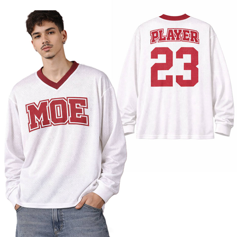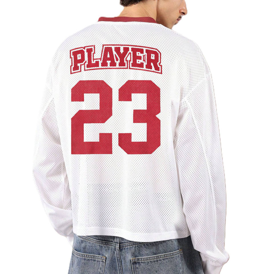 เสื้อเจอร์ซีย์อเมริกันฟุตบอลผู้ชายไซส์ใหญ่ ผ้าตาข่าย แขนยาว สตรีทแวร์ คอวี หมายเลขผู้เล่นแบบกำหนดเอง แฟชั่นเสื้อทีม