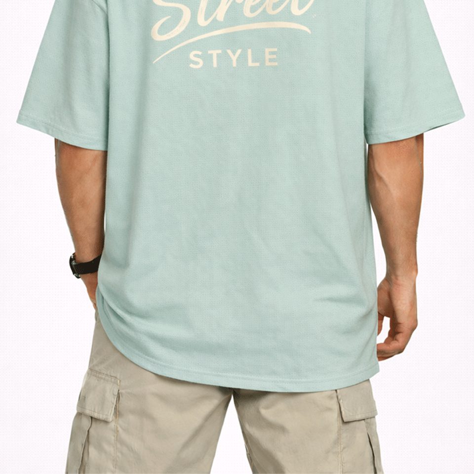 เสื้อยืดผู้ชายสีเขียวมิ้นท์ทรงโอเวอร์ไซส์ สไตล์สตรีทสุดเท่ ลำลอง ผ้าฝ้าย แขนสั้น คอกลม ทรงหลวม สตรีทแวร์