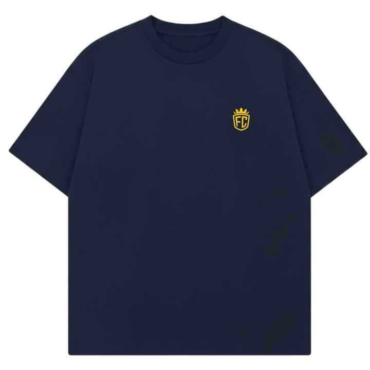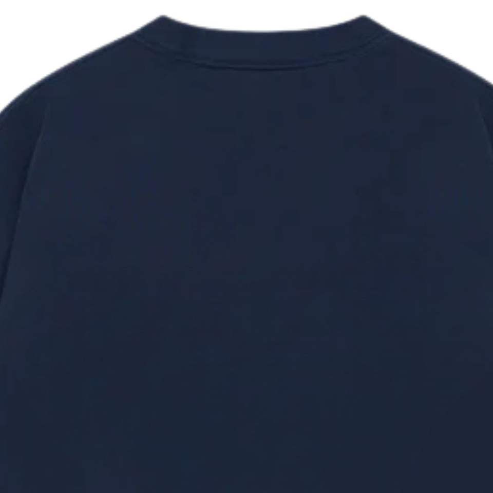 เสื้อยืดโอเวอร์ไซส์สีน้ำเงินกรมท่า แขนสั้น คอกลม ผ้าฝ้าย สไตล์ลำลอง สตรีทแวร์ โลโก้เล็กๆ ที่อก เสื้อยืดฤดูร้อนสำหรับผู้ชาย
