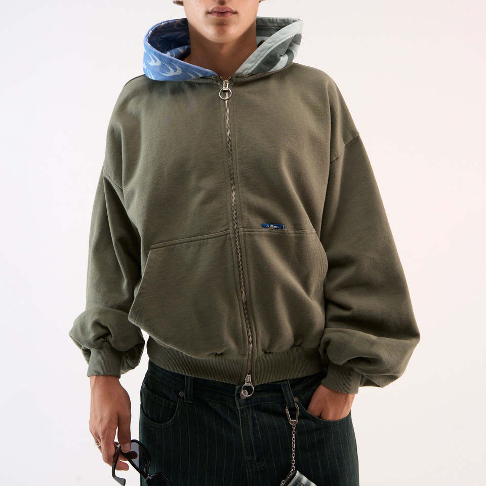 เสื้อกันหนาวแบบสวมหัวมีฮู้ดปะต่อโอเวอร์ไซส์ผู้ชายเสื้อแนวสตรีทแวร์วินเทจฟอกสี