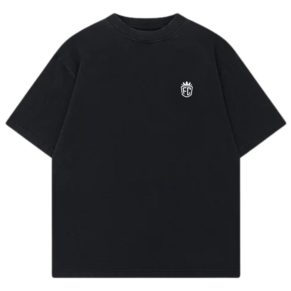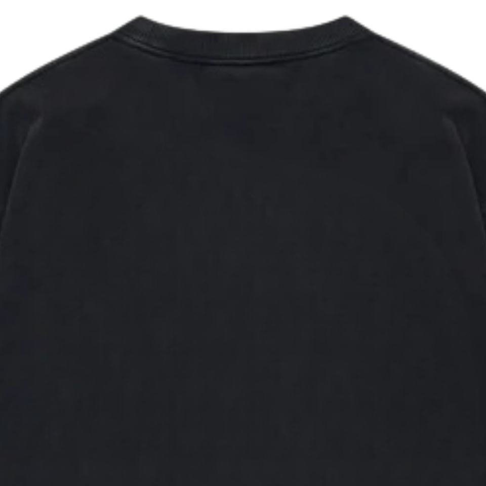 เสื้อยืดแขนสั้นสีดำทรงโอเวอร์ไซส์สำหรับผู้ชาย พิมพ์ลายเล็กน้อยที่อก ผ้าฝ้าย คอกลม สไตล์ลำลอง สตรีทแวร์ เสื้อพื้นฐาน ขายส่ง โรงงาน OEM