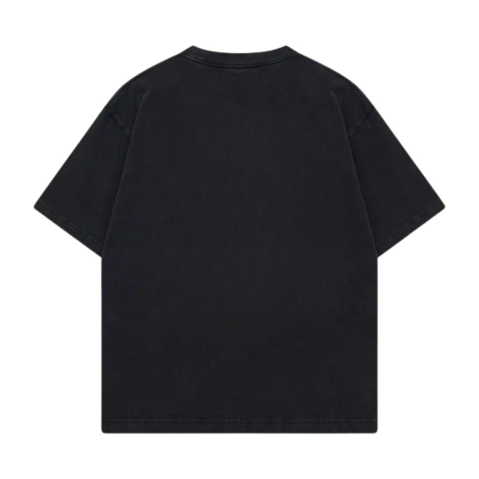 เสื้อยืดแขนสั้นสีดำทรงโอเวอร์ไซส์สำหรับผู้ชาย พิมพ์ลายเล็กน้อยที่อก ผ้าฝ้าย คอกลม สไตล์ลำลอง สตรีทแวร์ เสื้อพื้นฐาน ขายส่ง โรงงาน OEM