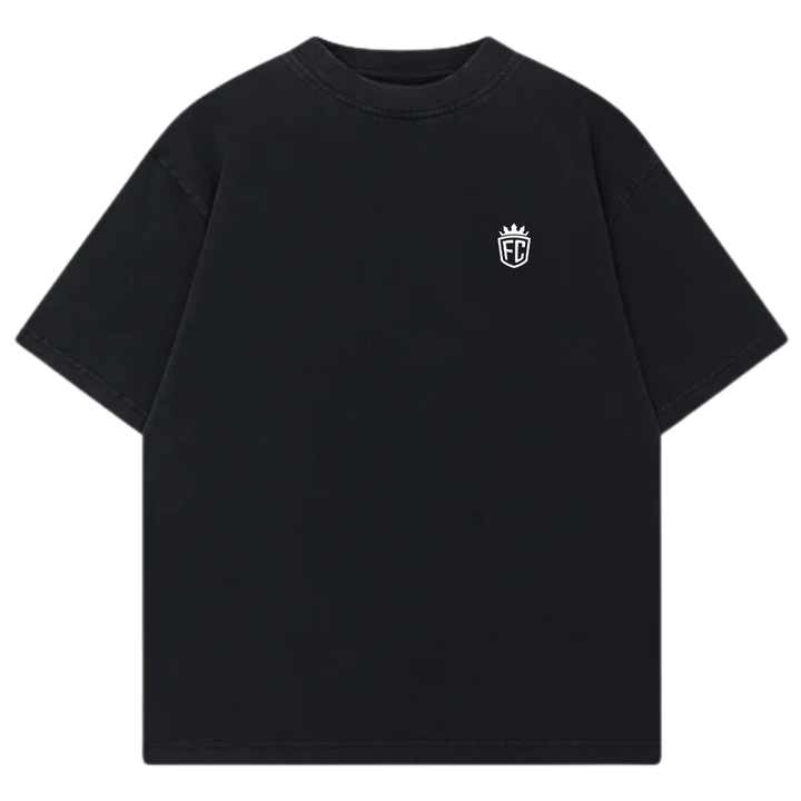 เสื้อยืดแขนสั้นสีดำทรงโอเวอร์ไซส์สำหรับผู้ชาย พิมพ์ลายเล็กน้อยที่อก ผ้าฝ้าย คอกลม สไตล์ลำลอง สตรีทแวร์ เสื้อพื้นฐาน ขายส่ง โรงงาน OEM