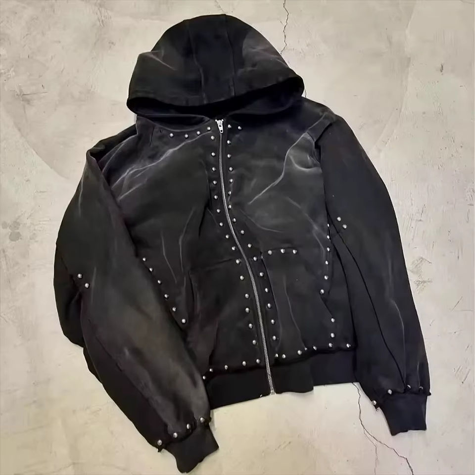 เสื้อฮู้ดโอเวอร์ไซส์ผู้ชายแนวสตรีทโอเวอร์ไซส์ผ้าคอตต้อนผสมไรน์สโตนผ้าคอตต้อนดีไซน์ซีดจางออกแบบได้ตามต้องการสำหรับฤดูหนาว