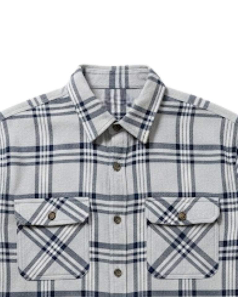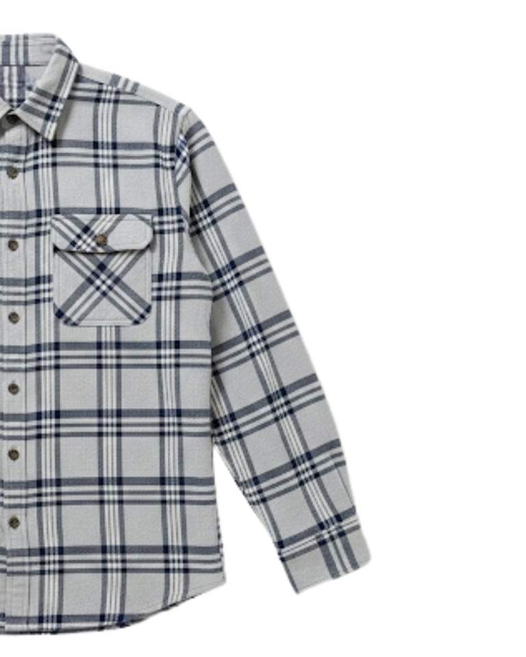 เสื้อเชิ้ตลายสก็อตแขนยาวผู้ชาย กระดุมผ่าหน้า สไตล์ลำลอง ผ้าแฟลนเนล สีเทาอ่อน สีน้ำเงินกรมท่า รับผลิตตามสั่ง ขายส่ง OEM