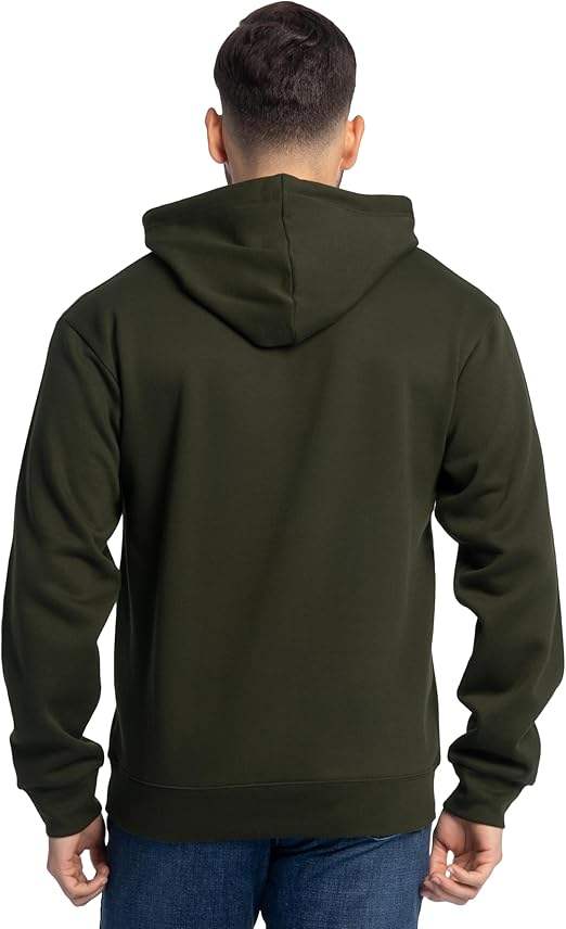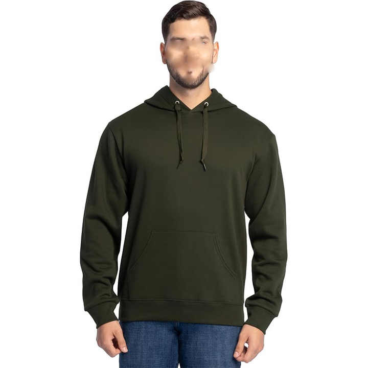 เสื้อกันหนาวมีฮู้ดแบบสวมหัวมีฮู้ดผ้าฟลีซสีเขียวเข้มปักโลโก้ได้ตามต้องการ