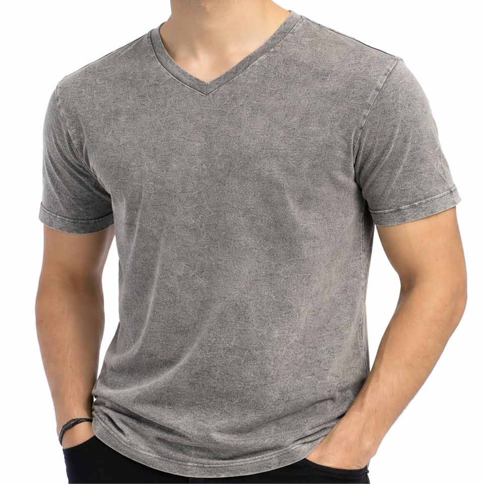 เสื้อยืดคอกลมผู้ชาย แขนสั้น ผ้าฝ้าย สไตล์ลำลอง ทรงเข้ารูป สีพื้น ดีไซน์เรียบง่าย สามารถสั่งทำได้ ล้างสีแบบแอซิดวอช