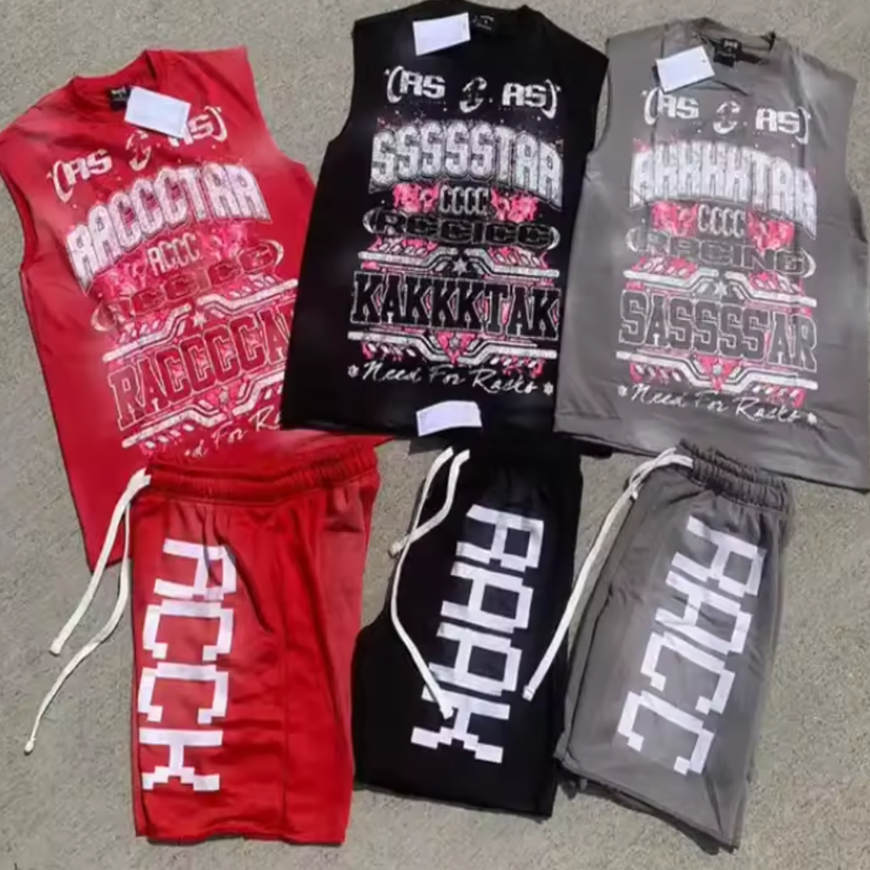 ชุดเสื้อยืดแขนกุดขอบดิบสำหรับผู้ชายชุดกางเกงขาสั้นและเสื้อยืดสำหรับผู้ชายขนาดใหญ่พิเศษ