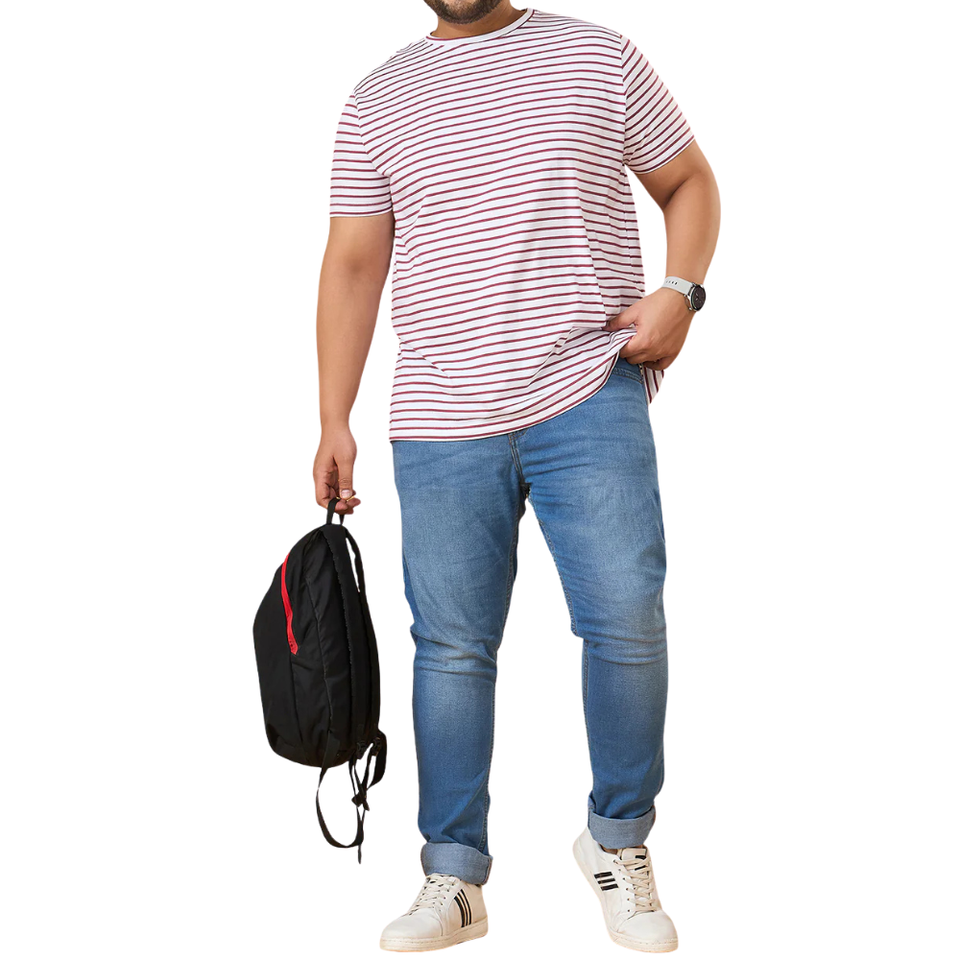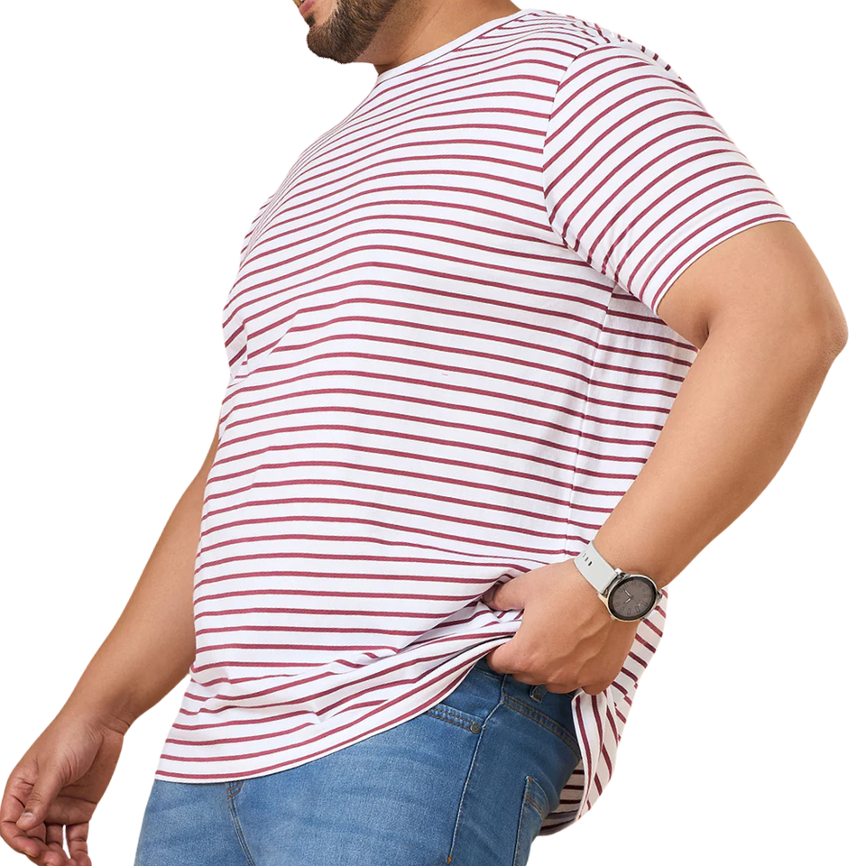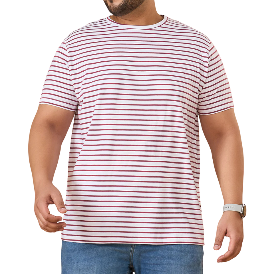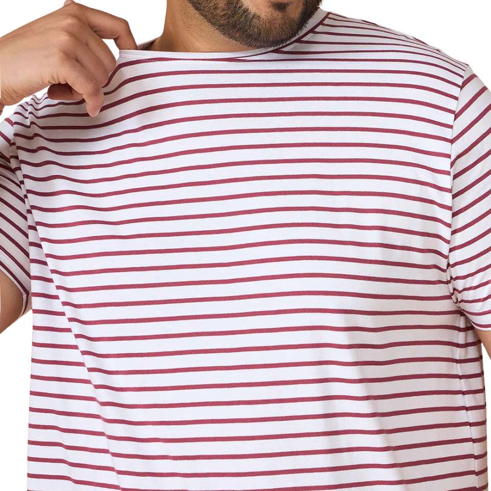 เสื้อยืดลายทางสำหรับผู้ชายเสื้อยืดผ้าฝ้ายแขนครึ่งคอลูกเรือลายทางคลาสสิกสำหรับผู้ชาย