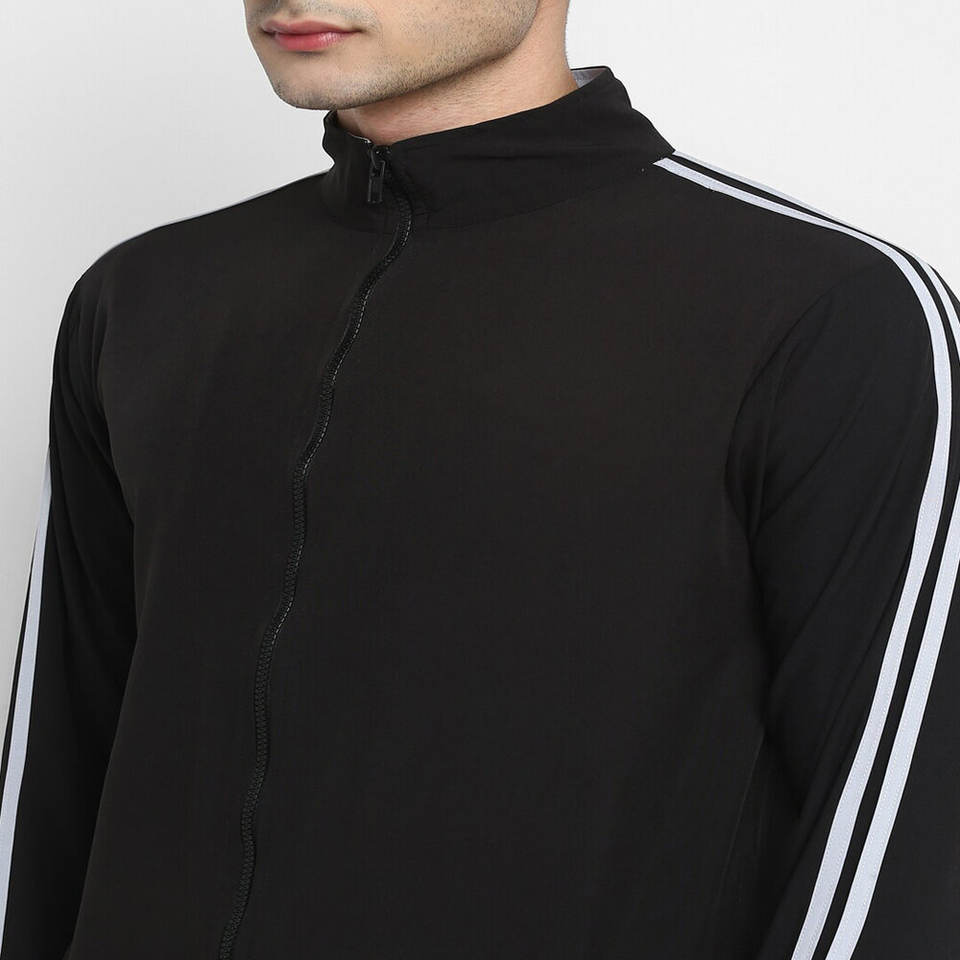 ชุดกีฬาโพลีเอสเตอร์สำหรับผู้ชายชุดวอร์มคอตั้งสีพื้นปรับแต่งได้ชุดวอร์มไซส์ใหญ่เป็นมิตรกับสิ่งแวดล้อม